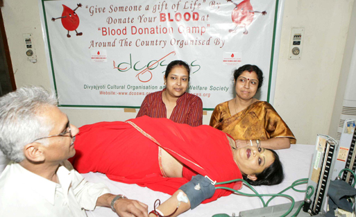 Large number of volunteers donated blood at the blood donation camp organised by Divya Jyoti Cultural and Social Welfare Society in Association with Indian Red Cross Society at the mp's club in north avenue on Sep 30, 2007. The pool of blood will be donated for the thaliassemia and cancer patients. This camp will be followed by various places in all over the country.